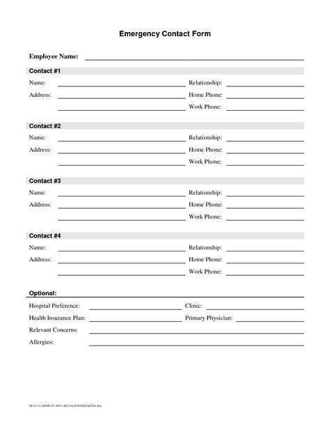 Download blank emergency contact list Library Binding Gutenberg